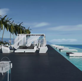 - Un edificio de apartamentos semicircular con infraestructura propia: restaurantes, cafeterías, playa privada y una piscina de agua salada única de 146 metros, una de las más grandes de América Latina.